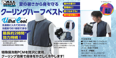 夏向け商品としてクールギアのクーリングハーフPCMベストが登場!夏のツーリングや屋外作業を快適にする冷却シートで快適な夏を過ごしてください。