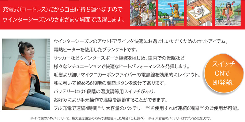 スタイルを気にせずあらゆるシーンで役に立つ、電熱インナー【サイバーウォーマー】、本物の温かさを追求し、オールマイティに役立つ 電熱ブランケット【クルマーレ】、冬のツーリングシーンで大活躍する電熱シート【サイバーホットシート】。
